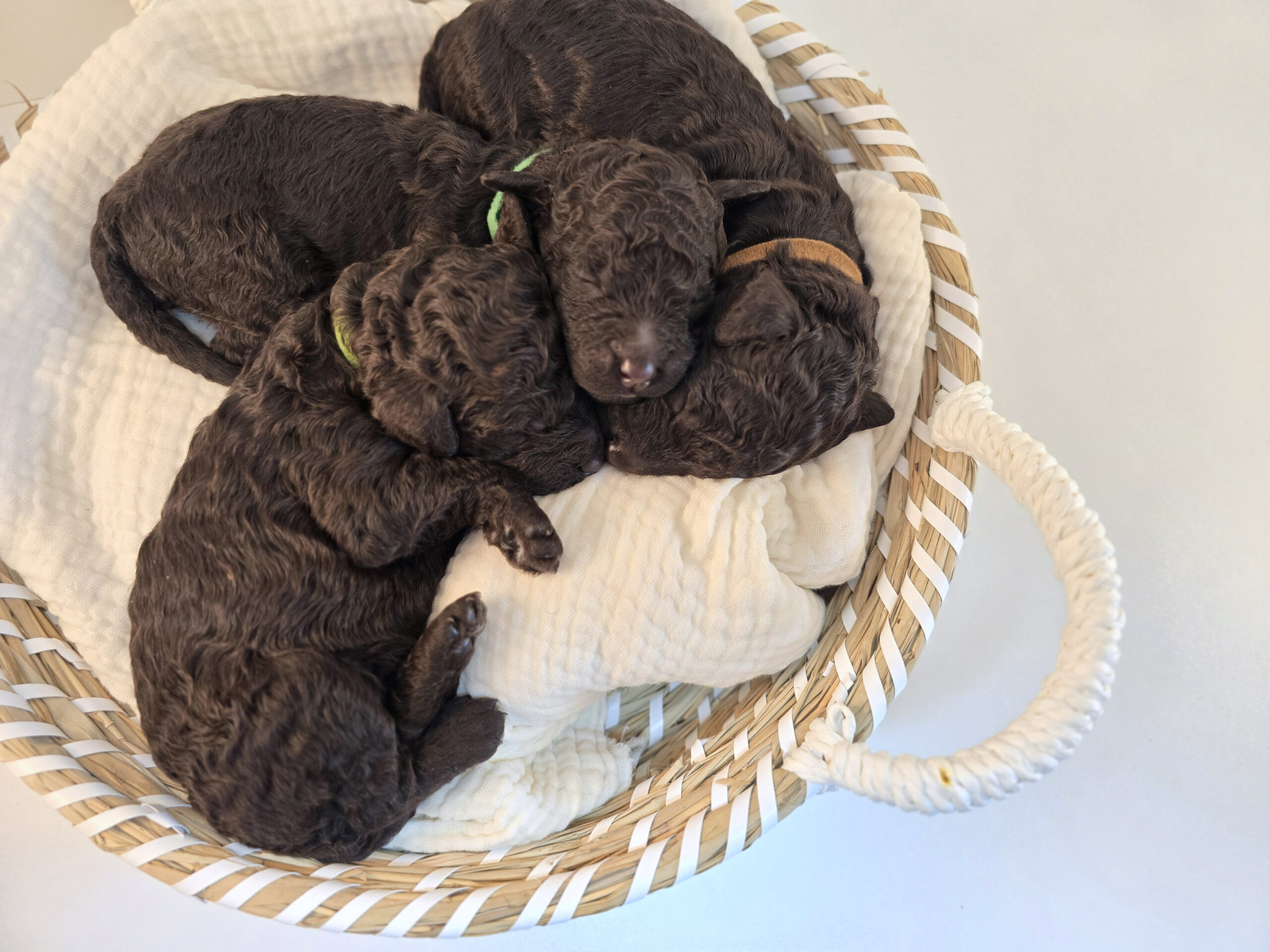 Die Welpen dürfen zwischen der 11. und 12. Lebenswoche in ihr neues Zuhause ziehen, also zwischen dem 10. und 21. September 2025. Einige Welpen sind schneller bereit für den Umzug als andere – manchen tut es gut, früher seine neuen Herzensmenschen kennenzulernen, andere profitieren davon, wenn sie noch ein paar Tage länger bei Mama bleiben können.