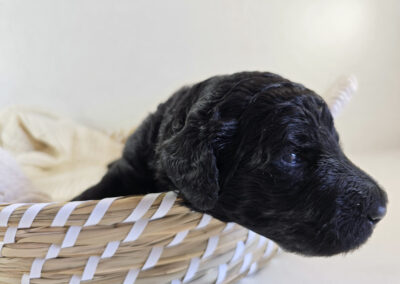 Ayatay (oder kurz: Aya) bedeutet „so schön wie der Mond“ (Persisch). Sie bezaubert mit ihrer anmutigen, sanften und liebevollen Art. Sie strahlt Ruhe und Harmonie aus und verleiht ihrem Umfeld eine besondere friedliche Atmosphäre. Keiner der anderen Wunder-Welpen kann so niedlich schauen wie Aya…Doch die kleine Aya ist keinesfalls ein verträumtes Mäuschen. Tatsächlich hat sie es faustdick hinter den Ohren und nimmt es mit jedem ihrer Geschwisterchen auf. Eine Spielaufforderung bleibt von ihr niemals unbeantwortet – es sei denn ein Mensch ist in der Nähe. Dann wartet Aya geduldig und höchst konzentriert darauf, in den Armen des Menschen schmelzen zu dürfen. Aya braucht kein „Komm“ oder „Guck“, sie bietet es ganz alleine an und ist höchst motiviert, sowohl Aufgaben zu lösen, als auch intensiv zu knuddeln.