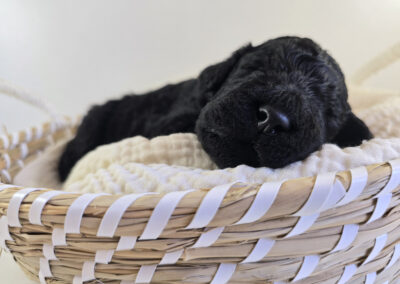 Yeshe, „der Weise“ (Tibetisch), ist ruhig, überlegt und besonnen. Mit seinem intelligenten, gelassenen Wesen bringt er Ruhe, Vertrauen und eine stille Stärke in jede Situation. Yeshe war nach der Geburt einer der leichteren Welpen und hat, als er drohte den Anschluss zu verlieren, eine Weile Extra-Portionen Ziegenmilch mit dem Fläschchen bekommen. Schon seitdem beginnt Yeshes Nase intensiv ihre Arbeit, sobald der junge Mann hochgenommen wird. Unter seinen Geschwistern ist er mit Abstand der intensivste Schnüffler und wird mit gezielter Nasenarbeit gefördert. Spielzeug plötzlich verschwunden? Yeshes Nase macht sich auf die Suche! Neben der Freude am Schnüffeln, genießt Yeshe auch das Spiel mit seinen Geschwistern und Kuscheln mit den Menschen. Gerne überzeugt er Menschen auch abwartend mit langem Blickkontakt zu einem gemeinsamen Spiel und freut sich besonders, wenn seine Körpersprache und Signale verstanden werden.